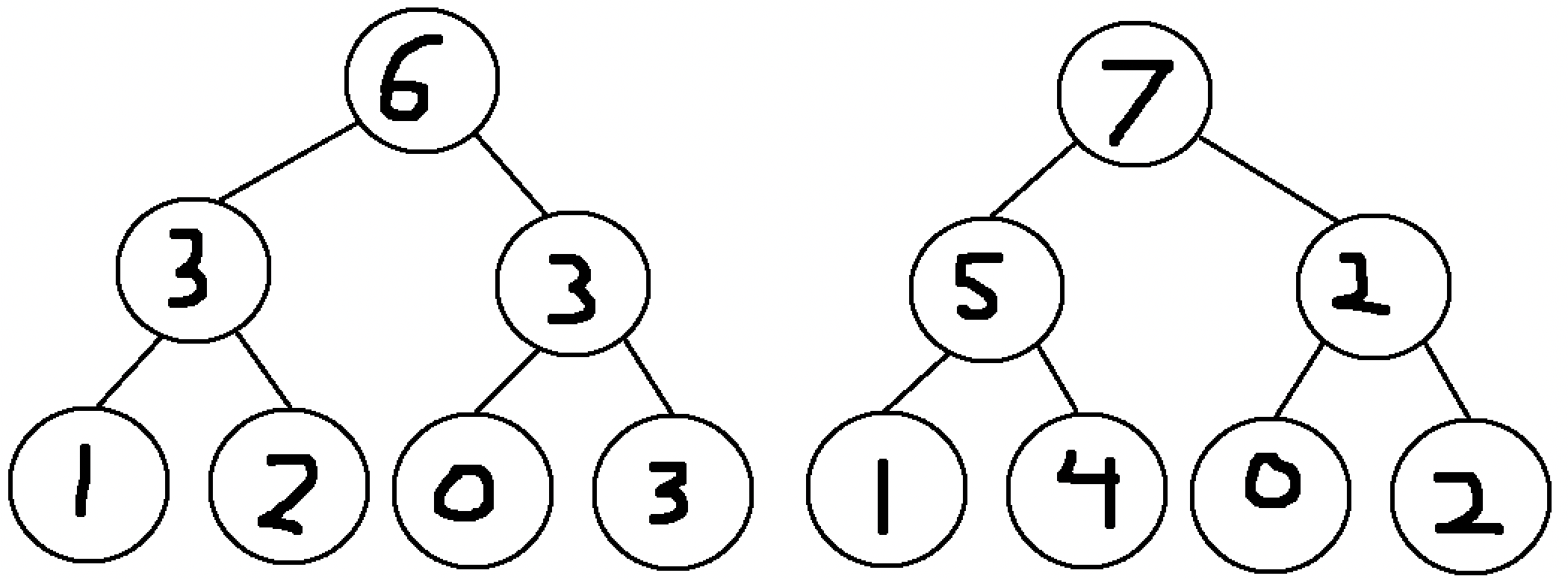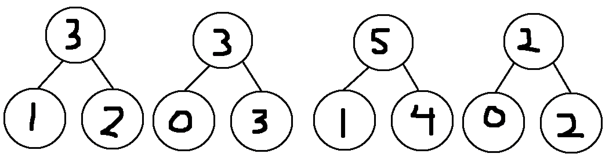 With efficient node selection, at most one node from each layer is going to be selected. This means in a much larger case, if John Code’s robot made a million measurements in total, then because the number of nodes in each layer is divided by two each time, such a segment tree would have only 21 such layers, meaning that ANY subarray sum for an array of one million values can be computed by just adding at most 21 values together! A segment tree of that size would consist of \(1000000 + 500000 + 250000 + ... + 2 + 1 \approx 2000000\) nodes, so while there is a substantial precomputation cost, if multiple subarray sums are required, this is a much faster method than burte forcing every query. Generally, for an array of \(n\) elements, a segment tree will create roughly \(2n\) nodes, and will require summing up at most \(\text{log}_2(n)\) nodes to compute a subarray sum. In big-O notation, this means the amount of time to create a segment tree scales linearly with the size of the array and can be represented as \(O(n)\), while the time needed to complete a single query scales logarithmically with the size of the array and can be represented as \(O(\log n)\).